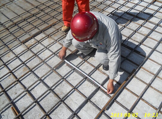 土建監理現場檢查壓縮機廠房筏板基礎鋼筋尺寸