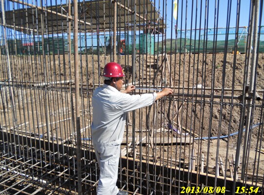 土建監理現場檢查壓縮機廠房基礎環墻鋼筋綁扎質量