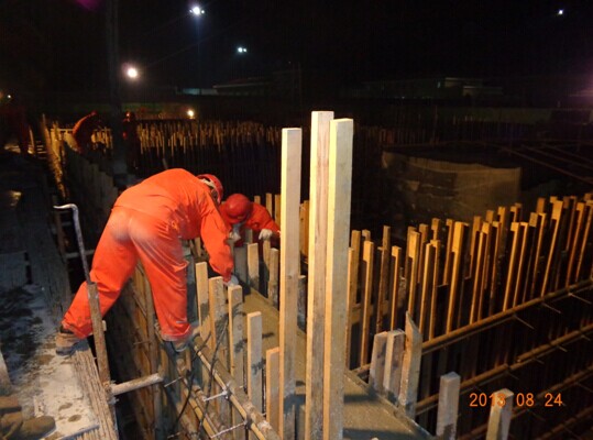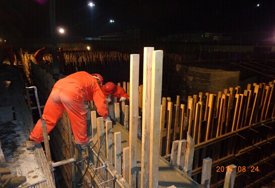 壓縮機廠房基礎環墻混凝土夜間澆筑施工現場