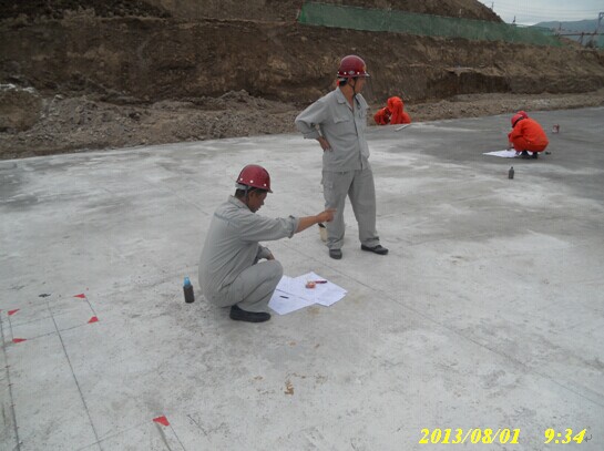 土建監理和項目總監現場復核壓縮機廠房基槽放線尺寸